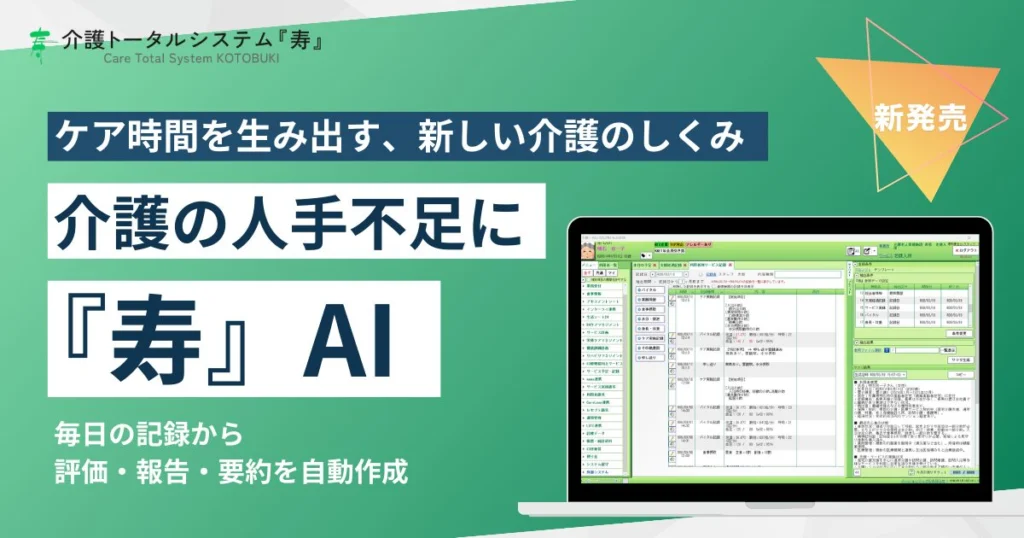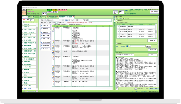 毎日の介護記録から、評価・報告・要約などを自動生成します。
